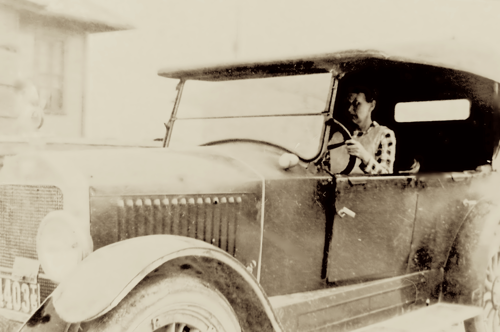 Lillie Ann Campbell in the car she used at her boarding house in Guffey.