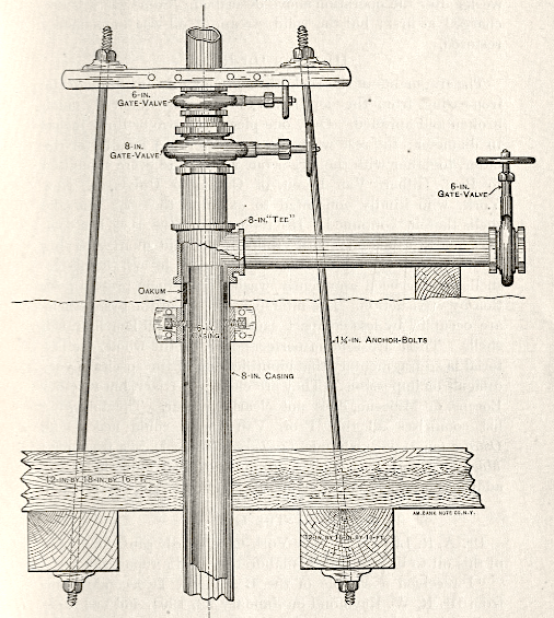 The immediate problem that Lucas, Higgins, the Hamill brothers, and their financial supporters faced was the uncontrolled flow of the well. If it remained unstopped, the well would be regarded as useless and dangerous. Lucas delivered a technically documented report in the next month (February 1901) in which he explained how the well was controlled. Although he was flooded by telegraphs offering unproven services for closing the well, Lucas was the engineer and he quickly devised and built a capping mechanism involving cascading sections of 8” and 6” pipe with separate valves to close off the flow to each, and with a horizontal outflow pipe. A foundation was laid in the ground while the oil continued to blow out. Then on the morning of January 19, workers moved Lucas’s closure device into place, carefully maneuvering it so that eventually the flow of oil passed through it. Workers then anchored the device with bolts to the foundation they had secured, and the valves were closed in a sequence that brought the flow to a standstill. By the afternoon of January 19, Lucas and Patillo and their supporters not only had an oil well with huge capacity: they also had a well that could be controlled. The control part of it was Anthony Lucas’s particular technical genius.